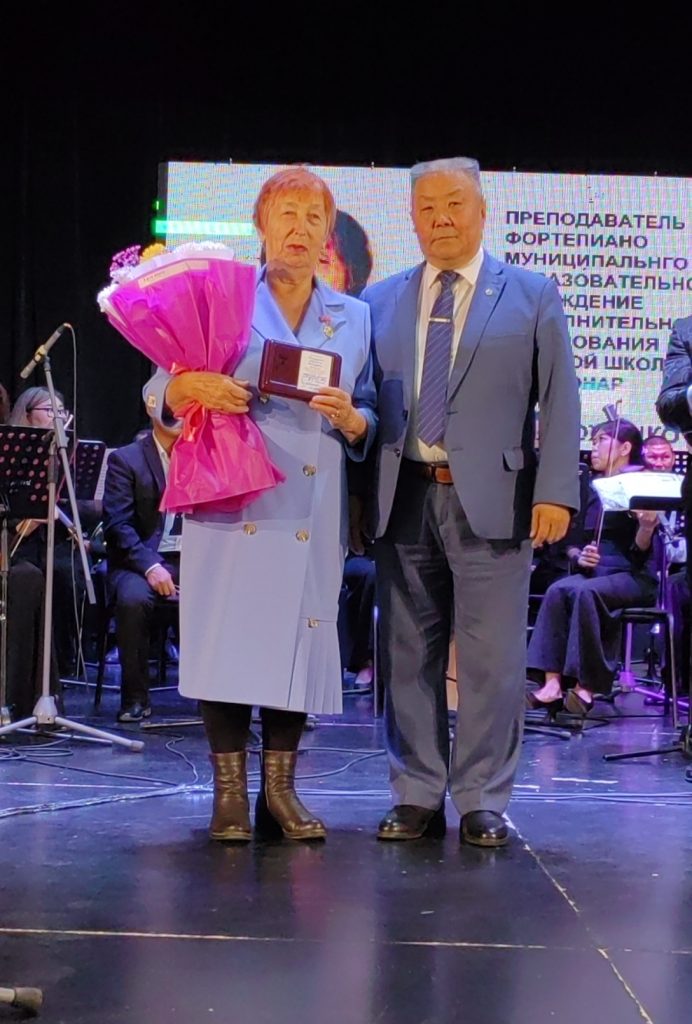 В день учителя Высокой награды удостоена преподаватель по классу фортепиано, высшей квалификационной категории, Заслуженный работник общего образования Российской Федерации, Заслуженный работник культуры Республики Тыва Стороженко Людмила Борисовна.