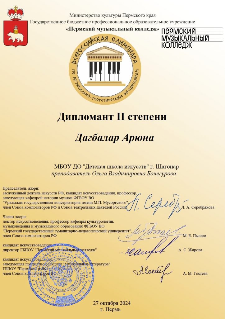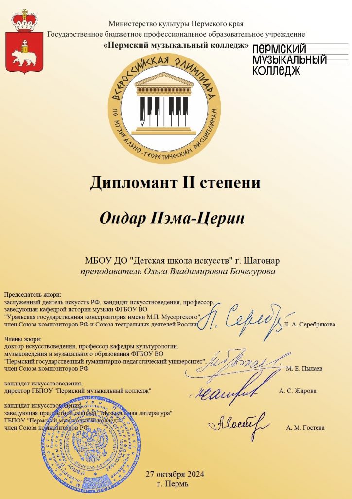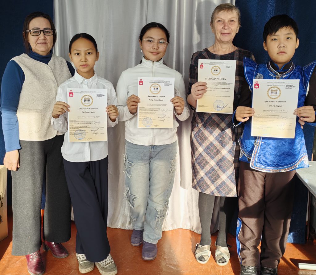 В призовую зону вошли 122 учащихся, среди которых и наши ученики — учащиеся отделения музыкально-теоретических дисциплин – Сат Ай-Мерген, Ондар Пэма-Церин, Дагбалар Арюна, преподаватель первой квалификационной категории, Заслуженный работник культуры Республики Тыва, Бочегурова Ольга Владимировна.