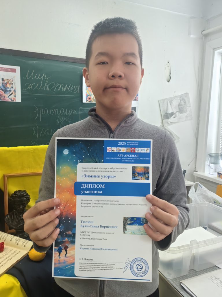 В конкурсе «Зимние узоры» удостоены звания дипломанта Сюртук Виктория и Тюлюш Буян-Санаа Борисович