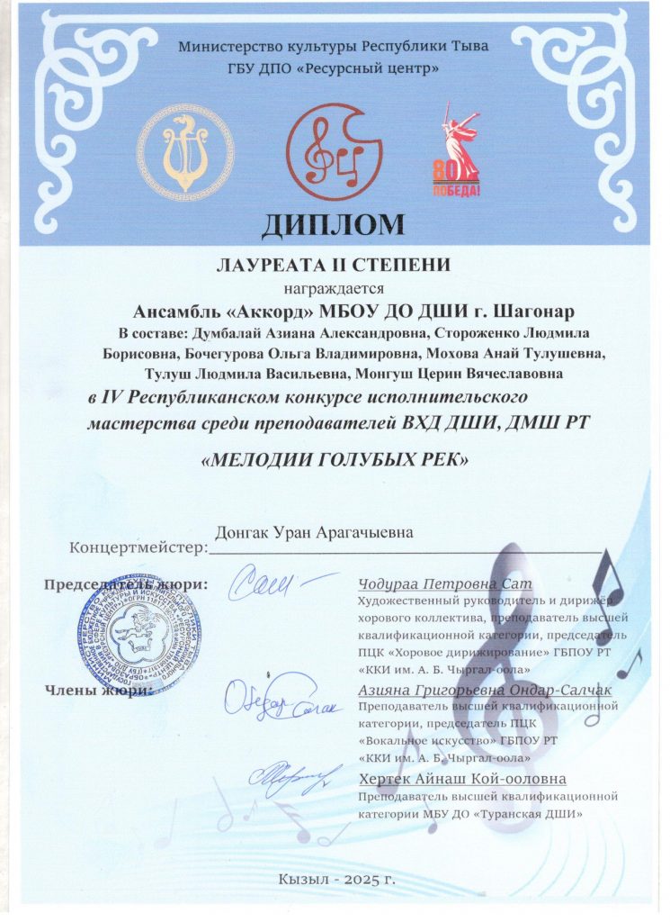 Поздравляем ансамбль преподавателей «Аккорд» с победой!