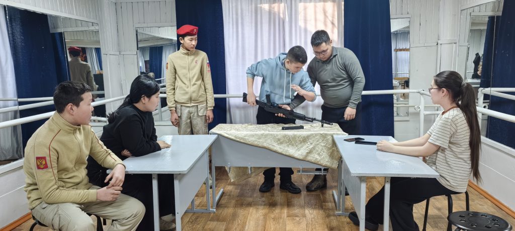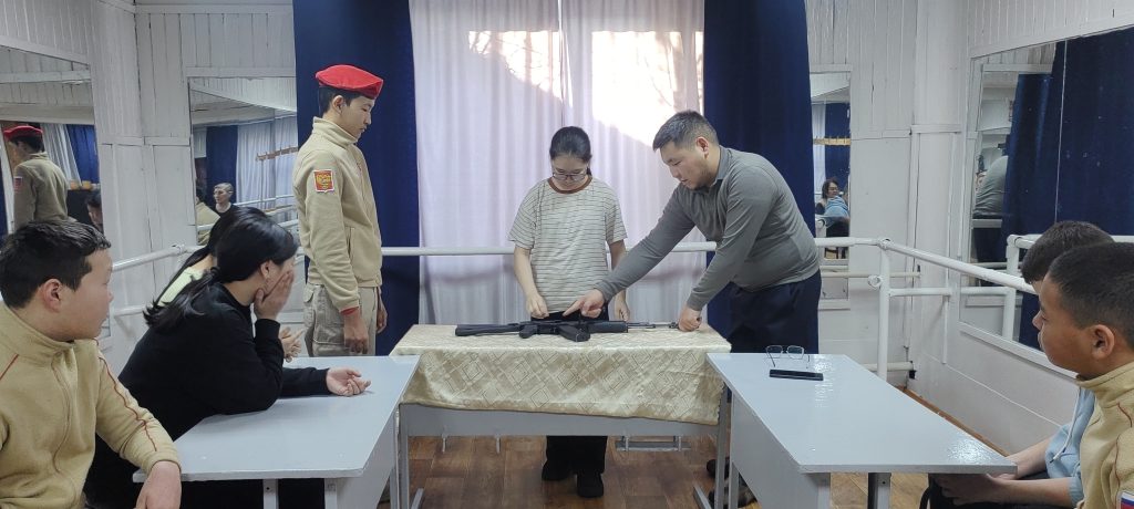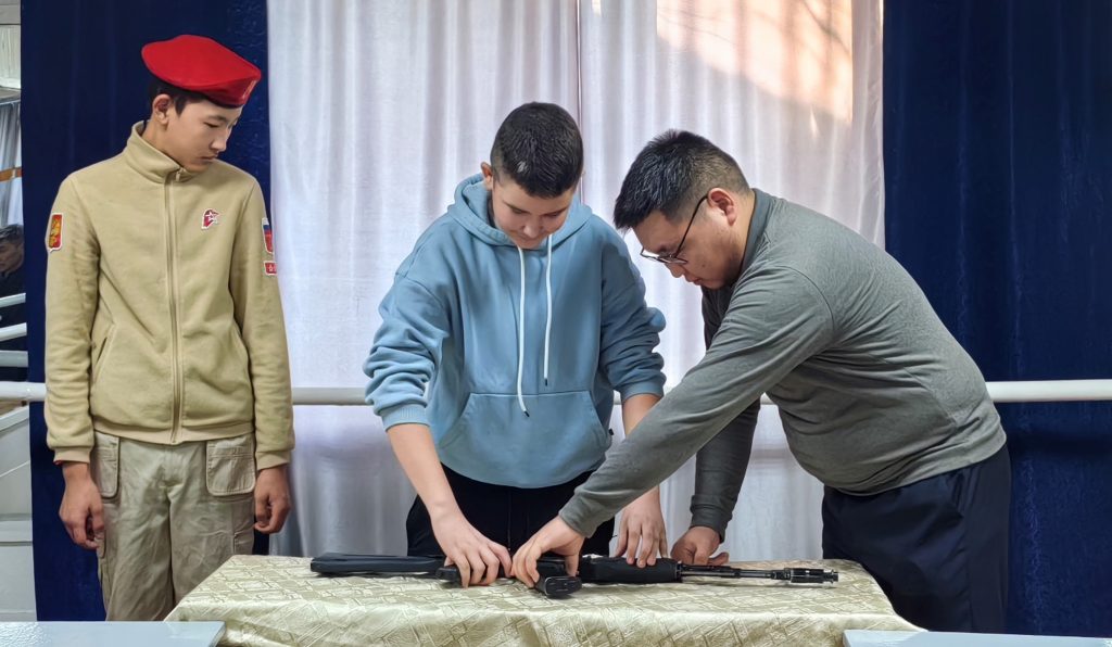 В «Детской школе искусств» г.Шагонар прошла товарищеская встреча с воспитанниками «Юнармии» МБОУ СОШ №1 г.Шагонар ко Дню защитников Отечества. На встрече юнармейцы показали мастер-класс по сборке и разборке автомата Калашникова. Преподаватель юнармейцев Ондар Ачыты Артышович рассказал принцип работы автомата, порядок сборки и полной, неполной разборки, а также требования по технике безопасности. Послушав требования по технике безопасности, ребятам было предложено проверить свои практические знания. Учащиеся по очереди разбирали и собирали автомат, проверяли свою скорость обращения с оружием.